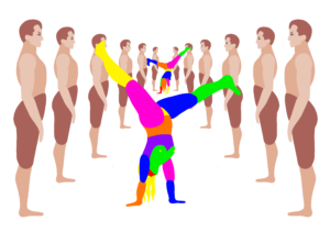 MEN IN PERSPECTIVE DANCE acryl on papyrus 40x30cm – RESERVED